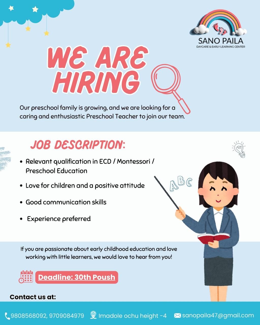 Vacancy Open in Samsara The Little School, Jawalakhel and Hattigauda