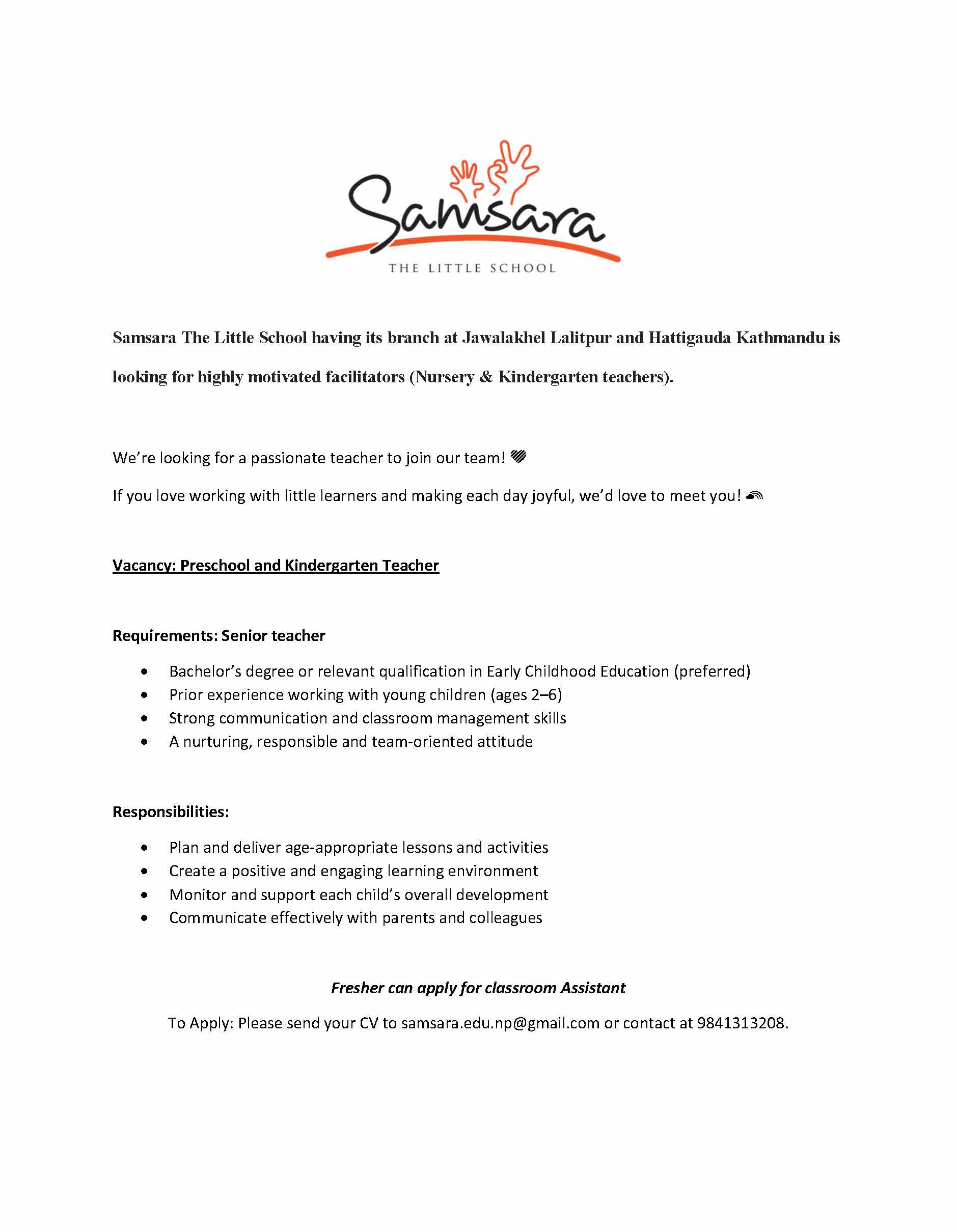 Vacancy Open in Mid Valley School, Suryabinayak, Bhaktapur