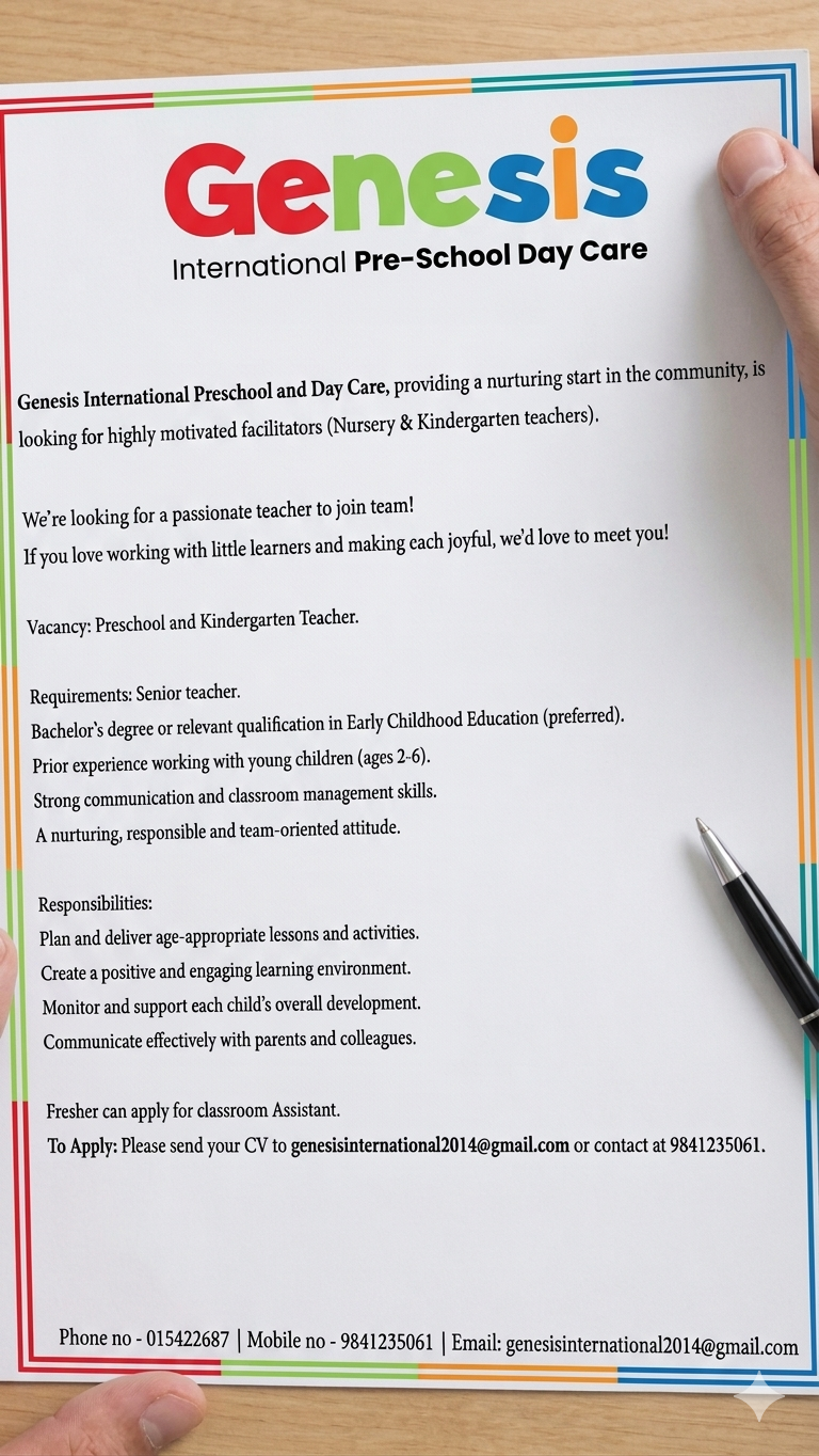 Vacancy Open in Genesis International Preschool and Day Care, Lalitpur